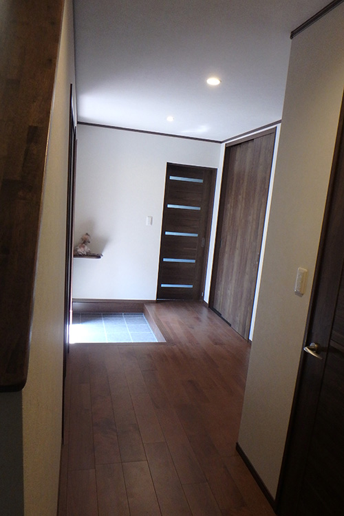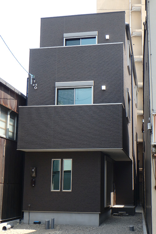 間口が狭く奥行きがある土地に3階建ての一戸建てを建てました。